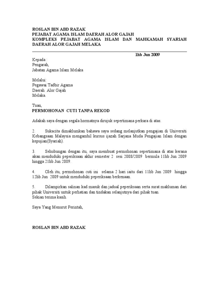 Contoh surat cuti kerja tanpa gaji nusagates.